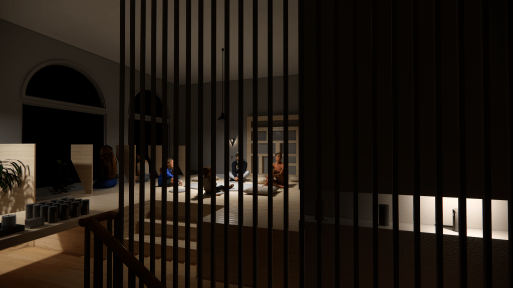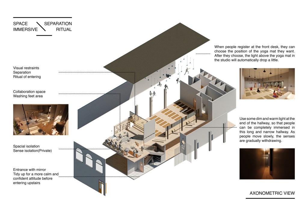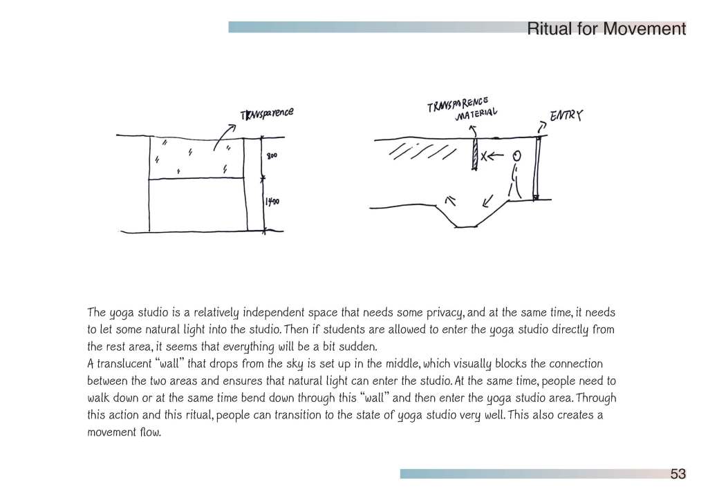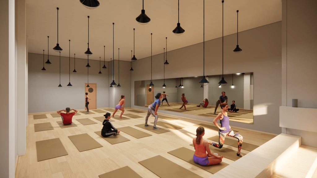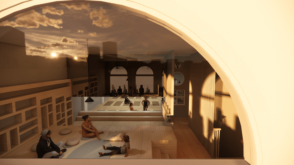 This is a yoga studio renovation project. This moment of design helps facilitate the yogi’s experience before they arrive on the mat for their physical practice.