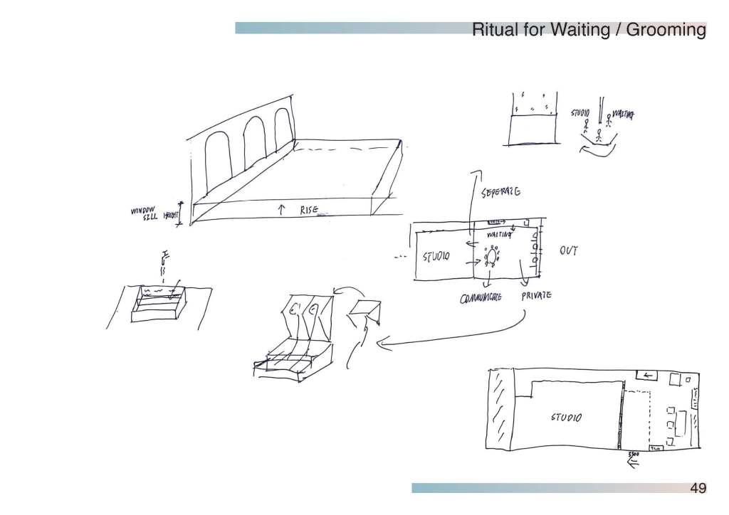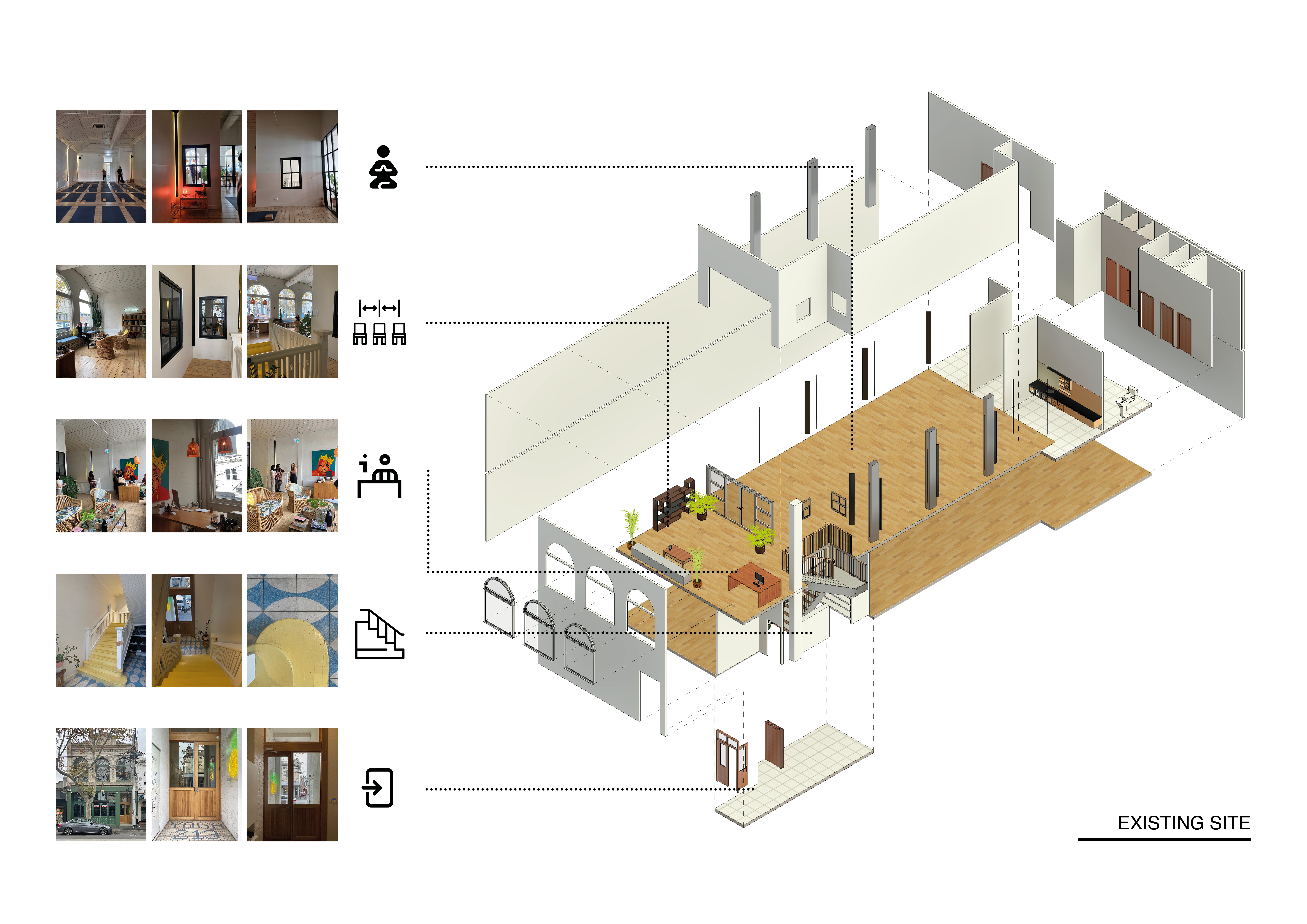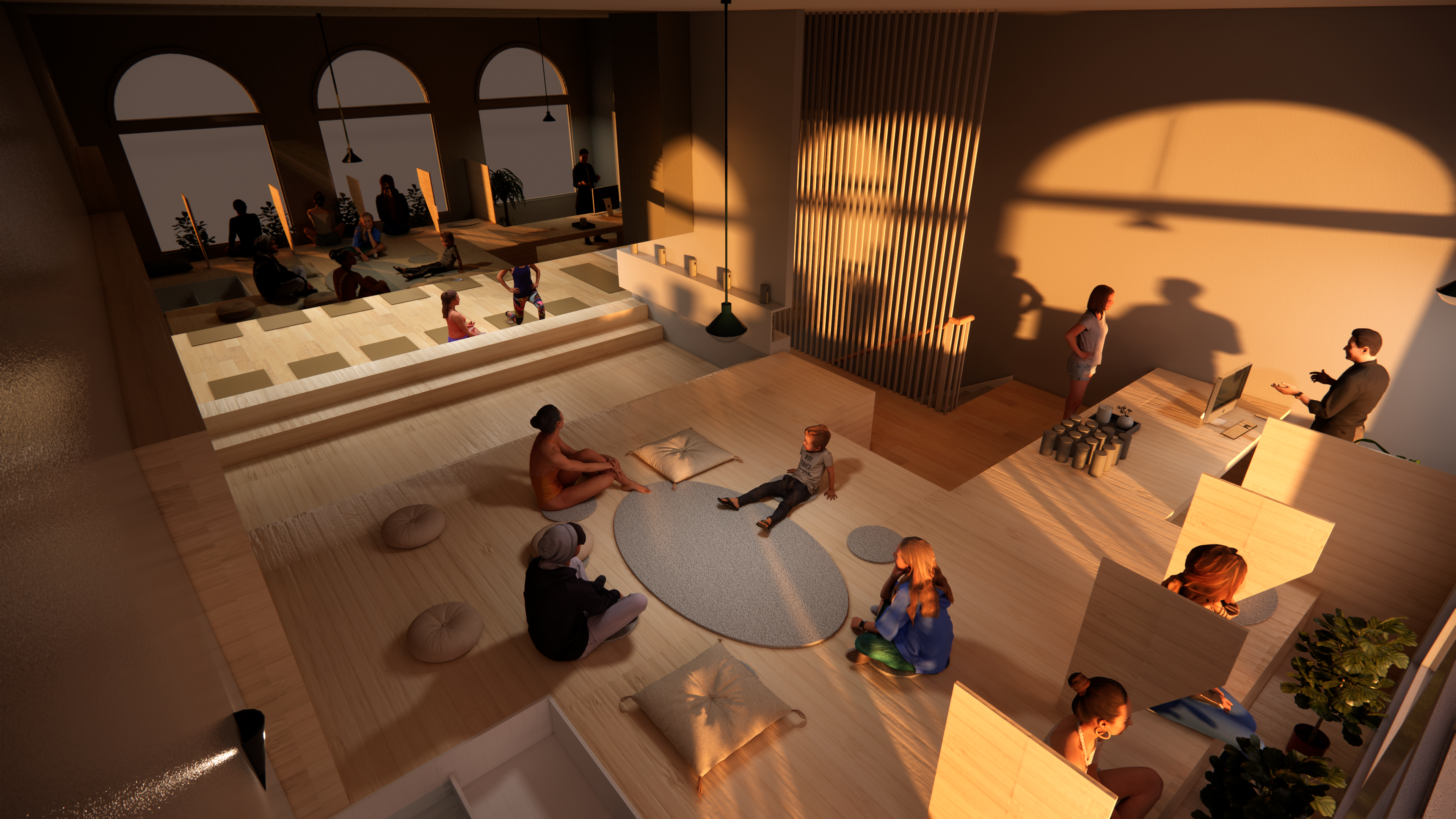 This is a yoga studio renovation project. This moment of design helps facilitate the yogi’s experience before they arrive on the mat for their physical practice.